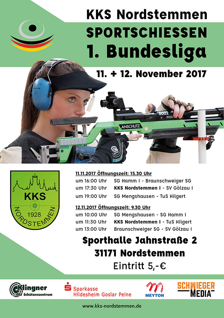 KKS Nordstemmen ist Gastgeber für die Wettkämpfe der 1. Bundesliga Luftgewehr Am 11. und 12. November schießt in der Jahn-Sporthalle Nordstemmen die 1. Bundesliga Luftgewehr. Gastgeber ist die Kleinkaliber-Schützengesellschaft Nordstemmen,...