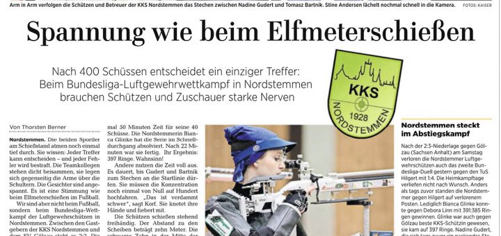 Die KKS Nordstemmen kehrte von den ersten Bundesliga-Wettkämpfen Luftgewehr mit einem Sieg und einer Niederlage zurück Nordstemmen (ks) – Am ersten Wettkampf-Wochenende der 1. Bundesliga Luftgewehr am 14./15. Oktober in...