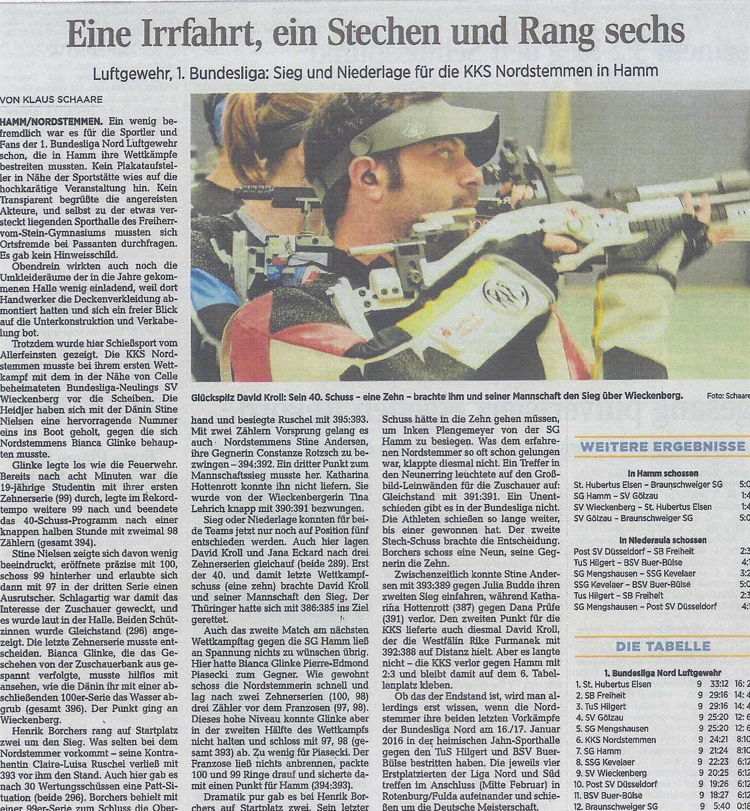 Pdf-Version 1. Bundesliga Luftgewehr: KKS Nordstemmen hat sich in Sachsen-Anhalt selbst ein Bein gestellt Es ist zum Heulen – die KKS Nordstemmen musste am vierten Wettkampf-Wochenende der Bundesliga Luftgewehr in...